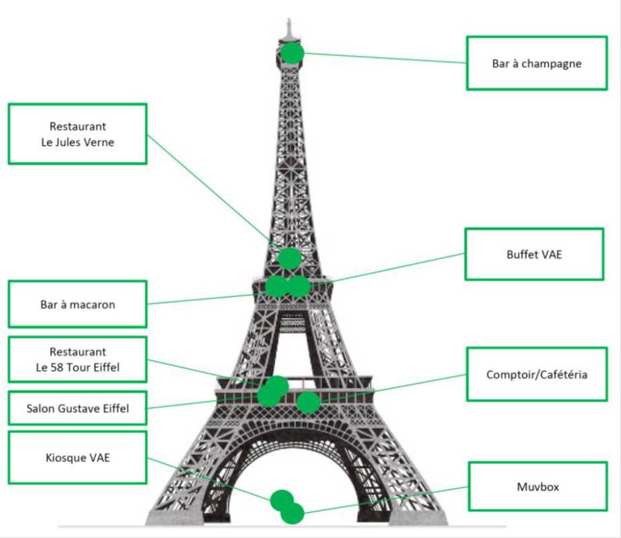 Mission de coordination pour la réalisation de l’offre en réponse à la consultation lancée par la SETE (Société d'Exploitation de la Tour Eiffel) pour la concession portant sur l'exploitation des services de restauration et de boissons de la Tour Eiffel : Le Jules Verne, le 58 TE, le Bar à Champagne, les espaces de restauration rapide et les kiosques de vente à emporter. Finaliste.